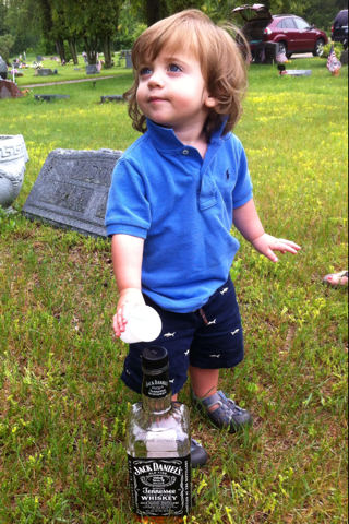 I leave you with a photo of Hoyt, after his toast to his great grandfather. Obviously a true “Hoyt”, as he has already acquired a love for the JD.