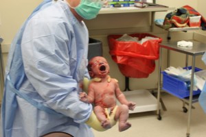 January 14 finally arrived, and your Dad chauffered me to Presbyterian hospital, just in time for your birthday. I got all prepped, your dad got dressed in his scrubs, looking might fine I might add, and off we rolled to meet you. They started the surgery, and everything was going well. Finally, I feel Dr. Shimer pull you out of my belly. A little time went by, and then I heard your powerful cry. Your dad then looked at you and said to me “It’s a Boy!”. We were overjoyed with a healthy, strong-lunged son! Only then did Dr. Shimer inform us that your cord had been wrapped around your neck three complete times, and that you were essentially ‘tethered’ to my uterus, without any room to move. In all her years of experience, she had never seen a baby wrapped three times.
