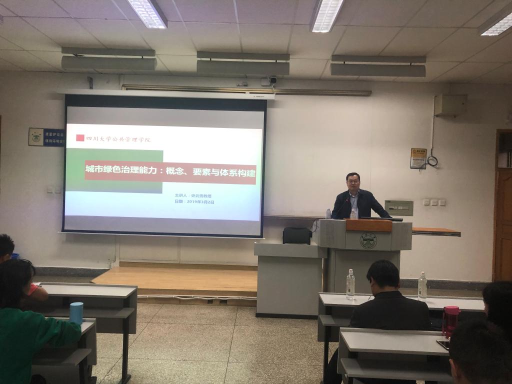2019年3月29日,bv伟德国际1946东陆校区文渊楼405室,bv伟德国际1946MPA教育中心邀请四川大学公共管理公司经理史云贵教授,为2017级、2018级MPA学员带来了一场关于城市绿色治理体系的高端学术讲座。
