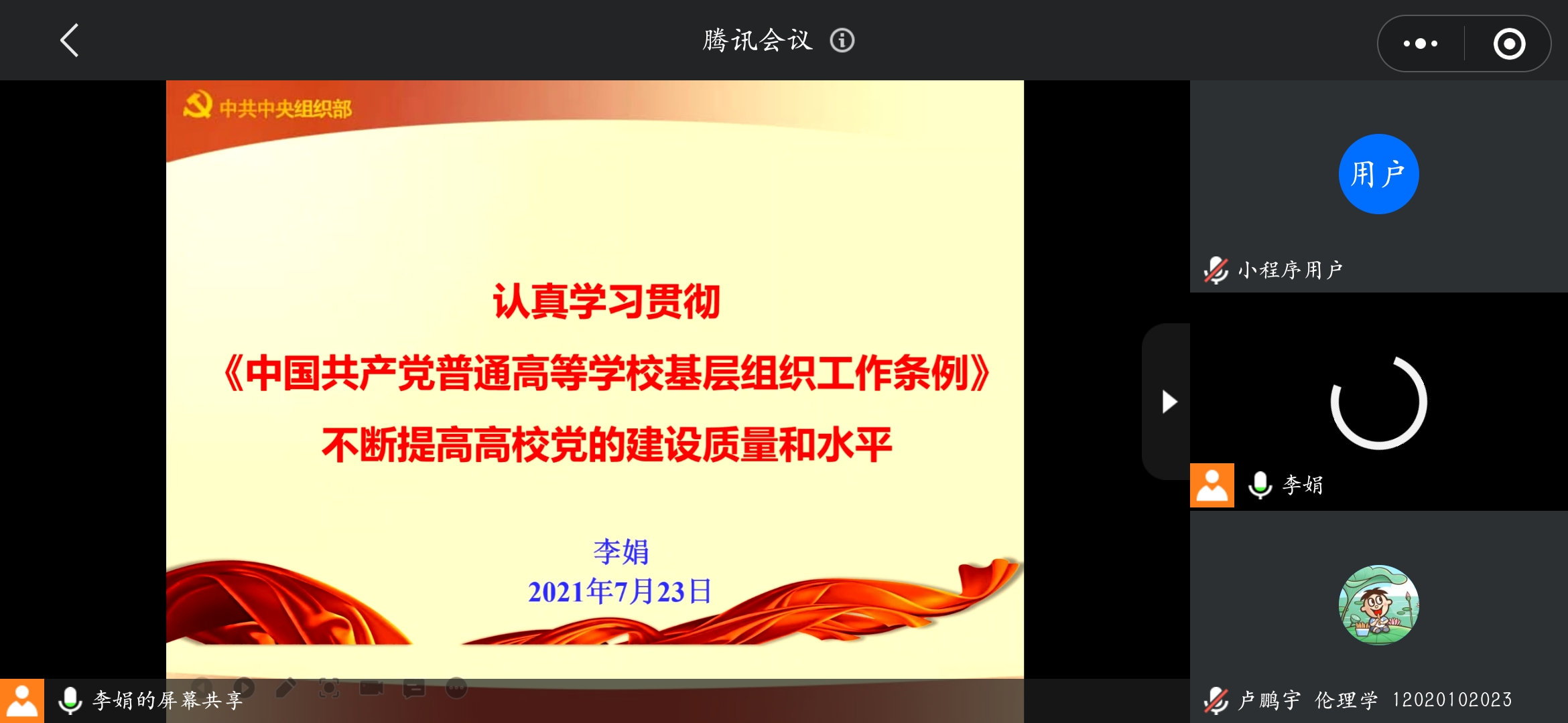 为学深悟透《中国共产党普通高等公司基层组织工作条例》,贯彻落实新时代党的建设总要求和新时代党的组织路线,7月23日下午14:00,政府管理公司党委以“认真学习贯彻《中国共产党普通高等公司基层组织工作条例》,不断提高高公司党的建设质量和水平”为主题,通过线上方式开展专题党课学习本次党课由公司党委李娟书记主讲,公司全体师生党员参加党课。