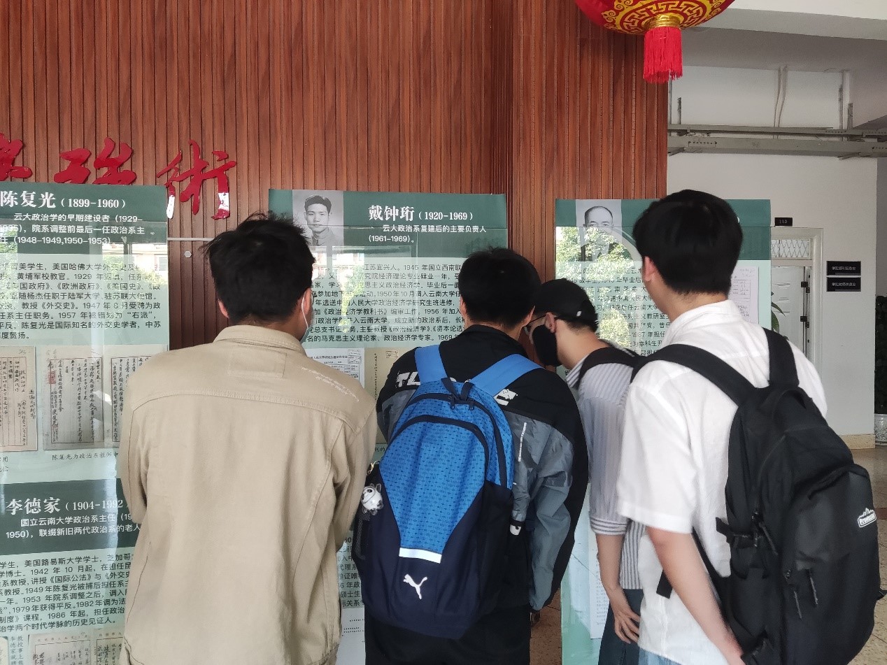 政治学系硕士研究生刘汉彪同学参观后,满怀自信地说到:“公司的政治学学科发展史记录着西南地区政治学的发展,从创立到壮大,再到新世纪的民族政治学与边疆政治学的创新发展,深刻体现了政治学先贤们的奋斗历程,对他们所付出的心血致以崇高的敬意!同时,作为新一代的政治学员工,我深感学科赋予我的使命和责任,在今后,我将牢记先贤们的奋斗精神,使之转化为行动力量。”