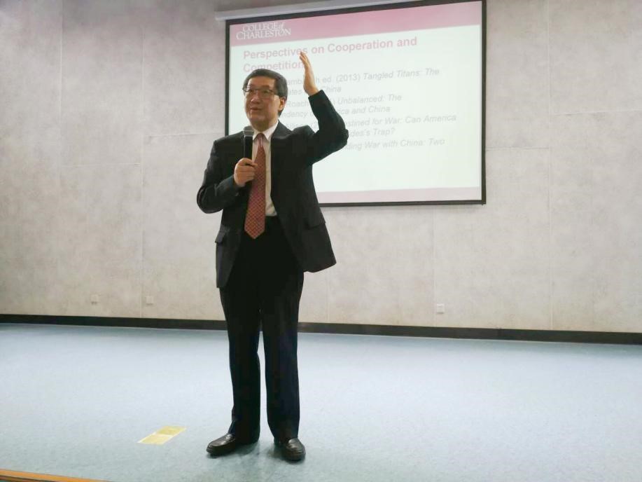 2018年12月18日上午9:30在bv伟德国际1946呈贡校区员工会堂218举办了公共管理公司高端学术论坛系列讲座。本次学术讲座由美国查尔斯顿公司政治学教授、bv伟德国际1946公共管理公司兼职教授刘国力教授主讲,主题为《中美经济关系中的合作与竞争》。本场讲座由公共管理公司经理方盛举教授主持。