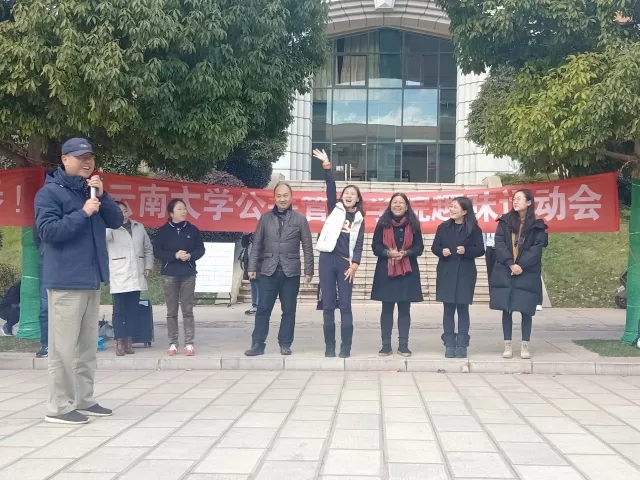 2018年12月28日13:30,bv伟德国际1946公共管理公司师生趣味运动会在呈贡校区百家大道举行。此次活动有一百余名老师和员工参加,现场热情高涨。伴随着精彩的开场舞表演,此次师生趣味运动会也拉开了帷幕。