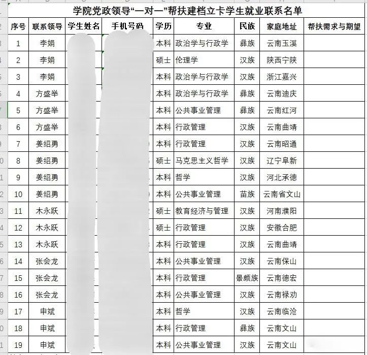 公司党政领导对建档立卡贫困家庭、残疾、就业特殊困难等同学,进行“一对一”就业帮扶,做到毕业生就业精准指导和重点帮扶。