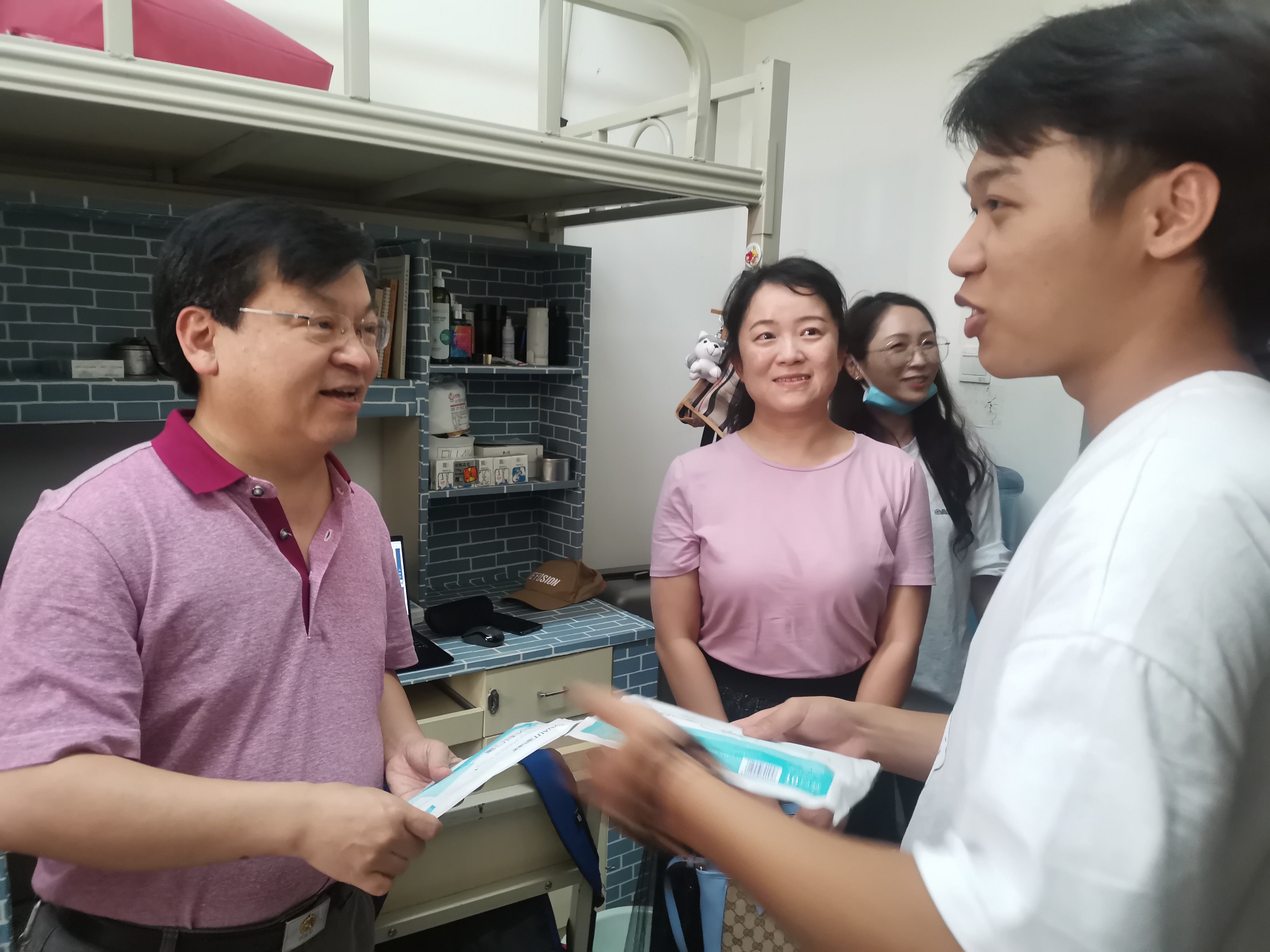 9月3日晚,为第一时间看望入学新生,了解新生入学情况,及时帮助新生解决遇到的实际问题,为他们送上公司的爱心和温暖,公司党委李娟书记、方盛举经理、姜绍勇副书记、张会龙副经理带领各班班主任和辅导员老师走访新生宿舍,了解新生入住情况,与新生面对面进行亲切交流,并向新生送上公司提前购置的爱心防疫口罩。