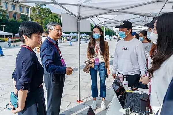 期间,公司党委林文勋书记、赵琦华副董事长来到百家大道伟德国际VICTOR1946报到点慰问参与新生报到工作的老师及志愿者,并与新生亲切交流,了解入学报到情况。