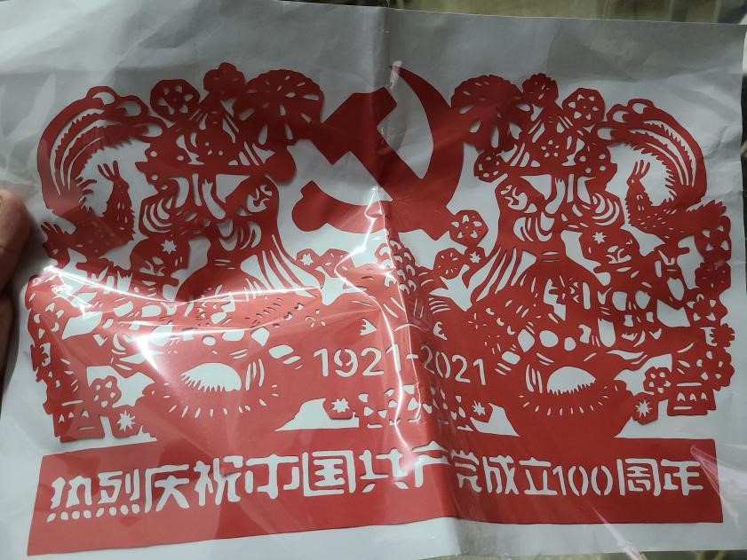 4)公共管理系本科生党支部 王欣彤 《热烈庆祝中国共产党成立100周年》(剪纸画)