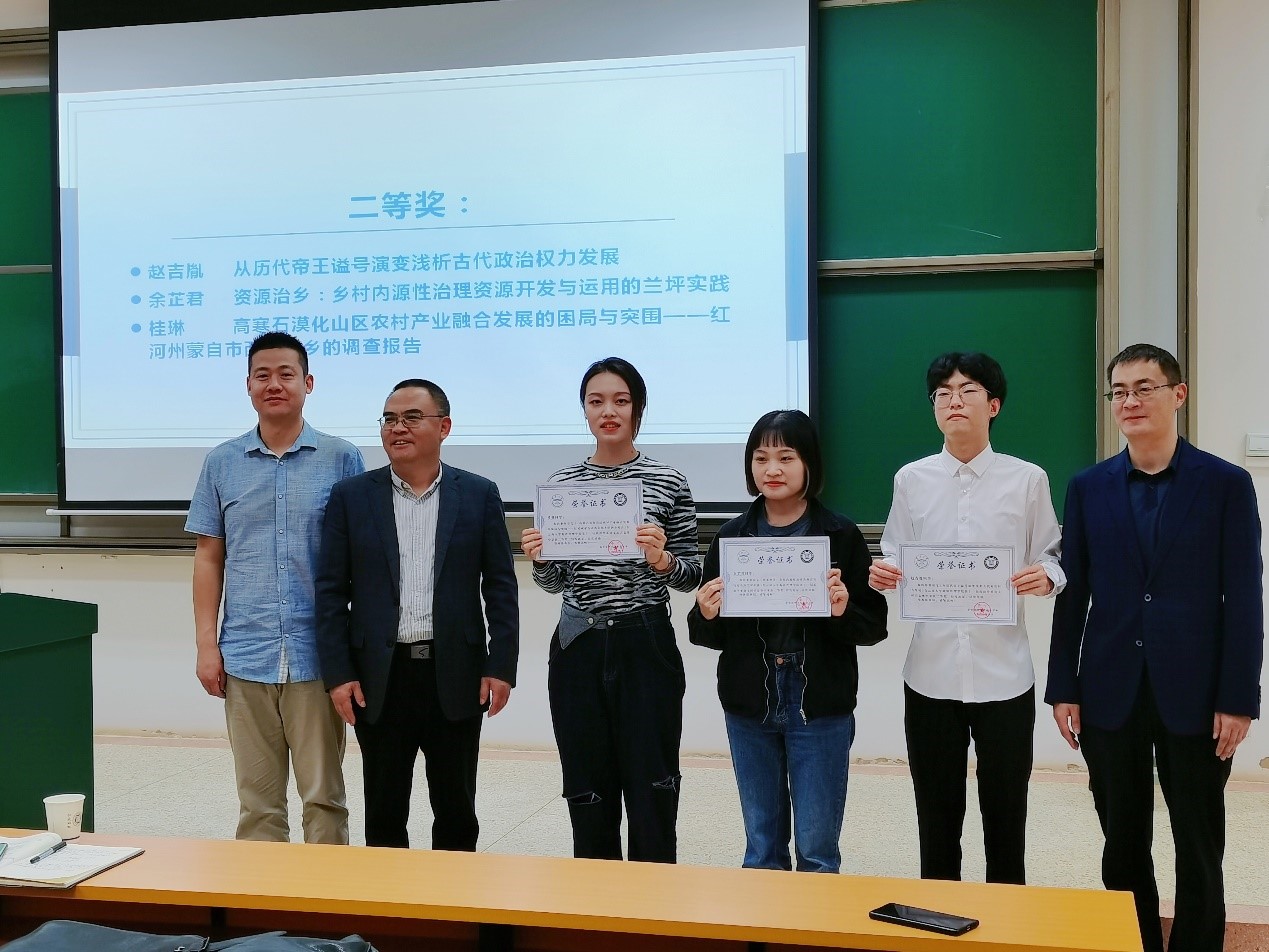 方盛举经理、木永跃副经理、申斌副经理、张会龙副经理、政治系四位老师为获得一、二、三等奖的同学进行颁奖。