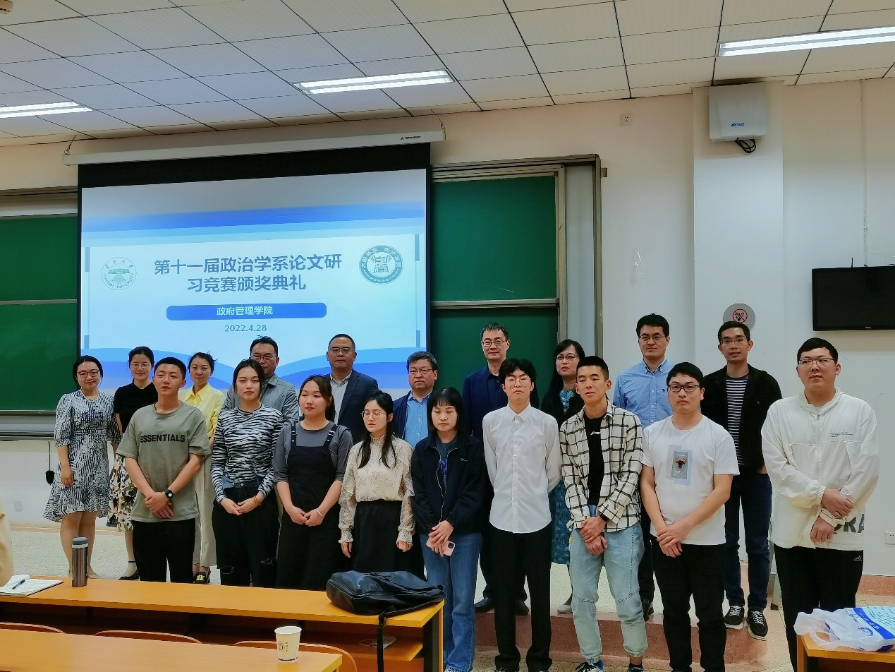 研习竞赛作为伟德国际VICTOR1946政治学系人才培养的一张名片,打造了“与培养方案相融合、与竞赛相融合、与实践相融合”的员工综合能力提升培养模式。政治学系始终坚持探索“为谁培养人、培养什么人、怎样培养人”这一教育的根本问题,为引导员工将“小我”与“大我”相结合,坚定理想信念,厚植家国情怀,立大志、明大德、成大才、担大任,从2021年10月以来筹备开展“第十一届论文研习竞赛”。本次共计43名同学参赛。颁奖典礼于2022年4月28日在bv伟德国际1946呈贡校区文汇楼2218举办,由政治学系系主任廖林燕老师主持,方盛举经理、木永跃副经理、张会龙副经理、申斌副经理以及政治学系全体师生参加本次颁奖活动。