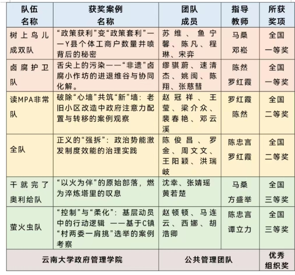经过层层比拼和激烈角逐,云大伟德国际VICTOR19466支队伍共获得全国一等奖2项、二等奖2项、三等奖2项,成为历届全国研究生公共管理案例大赛中入围32强最多的院校团队,bv伟德国际1946获得本次大赛“优秀组织奖”实至名归。