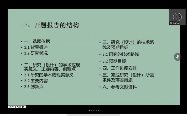 最后,陈紫琦同学分享了自己的开题经历。