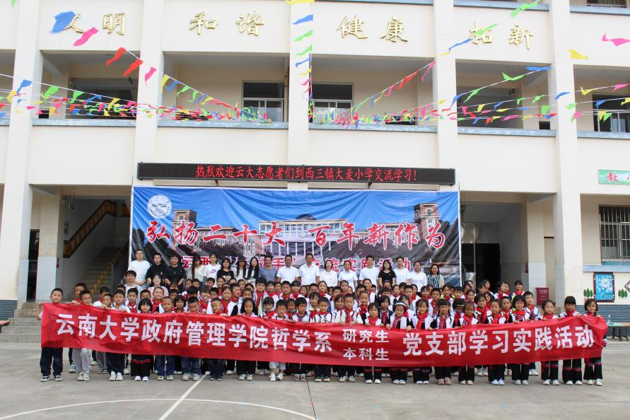 为贯彻落实习近平总书记致bv伟德国际1946建校100周年贺信精神,巩固和加强民族团结,关爱民族地区少年儿童。2023年6月2日,在国际儿童节到来之际,在bv伟德国际1946政府管理公司党委领导下,哲学系本科生、研究生党支部优秀党员志愿者到弥勒市西三镇大麦小学进行为期一天的交流学习和服务互动。