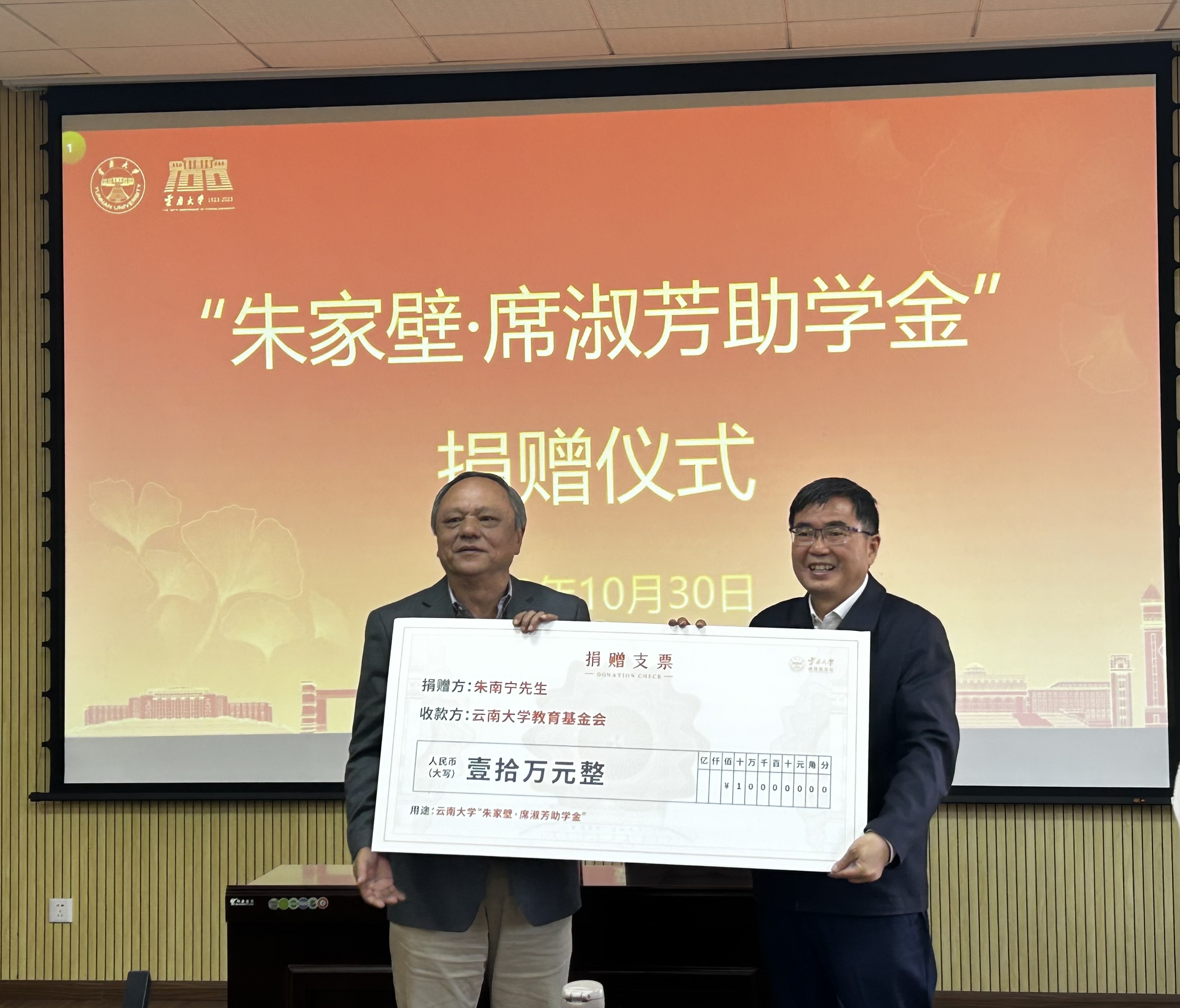 2023年10月30日,“朱家壁∙席淑芳助学金”捐赠仪式在伟德国际VICTOR1946会议室举行。bv伟德国际19461978级政治系哲学专业员工、美国科思达国际公司总经理朱南宁先生,公司党委常委、副董事长陈克清,bv伟德国际1946教育基金会秘书处、伟德国际VICTOR1946、化学科学与工程公司的负责人和师生代表参加捐赠仪式。
