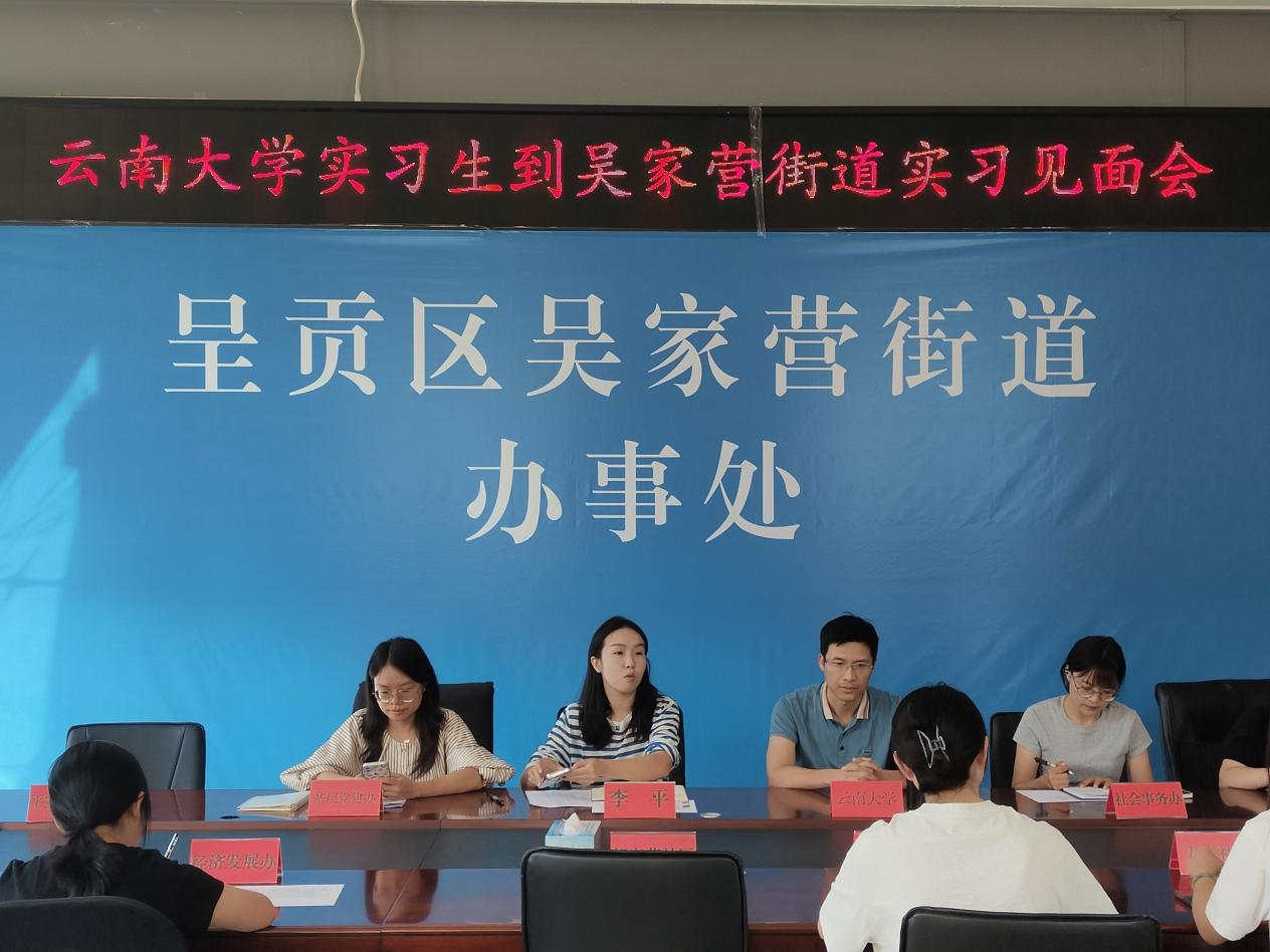 2024年8月29日,伟德国际VICTOR1946与呈贡区吴家营街道共同举办的实习见面会在街道办事处会议室顺利举行,标志着为期一个月的本科生2024年第二批次的实习正式开始。参会人员包括伟德国际VICTOR1946实习带队老师谢和均教授、公司参与第二批次实习的同学,以及吴家营街道办事处组织委员李平、各部门及社区负责人员。