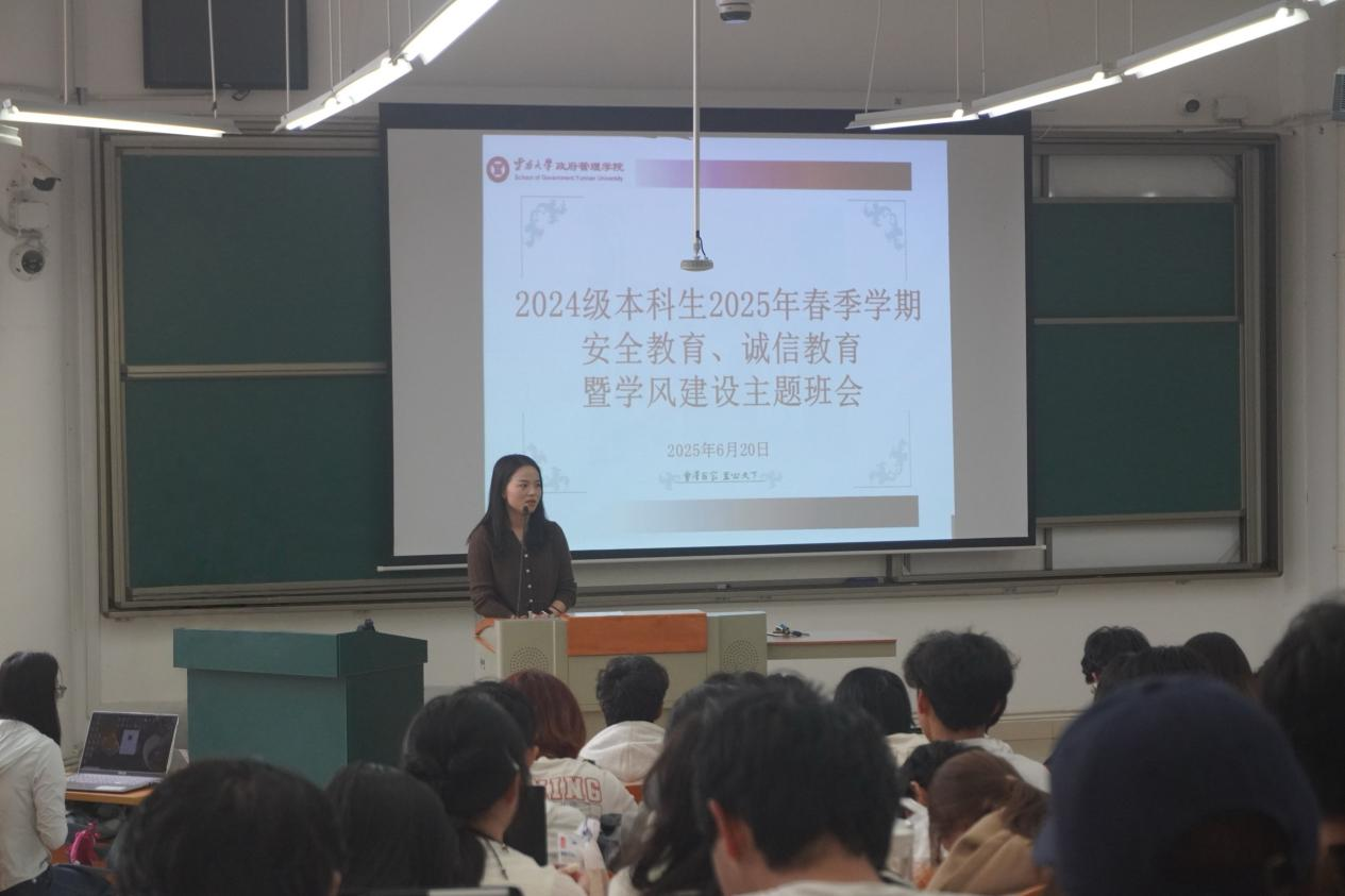 为进一步加强学风建设,增强员工的诚信意识和安全意识,确保期末考试有序进行,伟德国际VICTOR1946于2025年6月20日在力行楼1205召开2024级本科安全教育、诚信教育教育暨学风建设主题班会。会议议程包括云大优秀学子朋辈分享、安全与诚信教育、综合素质测评工作注意事项三个环节,2024级本科生及辅导员参加会议。