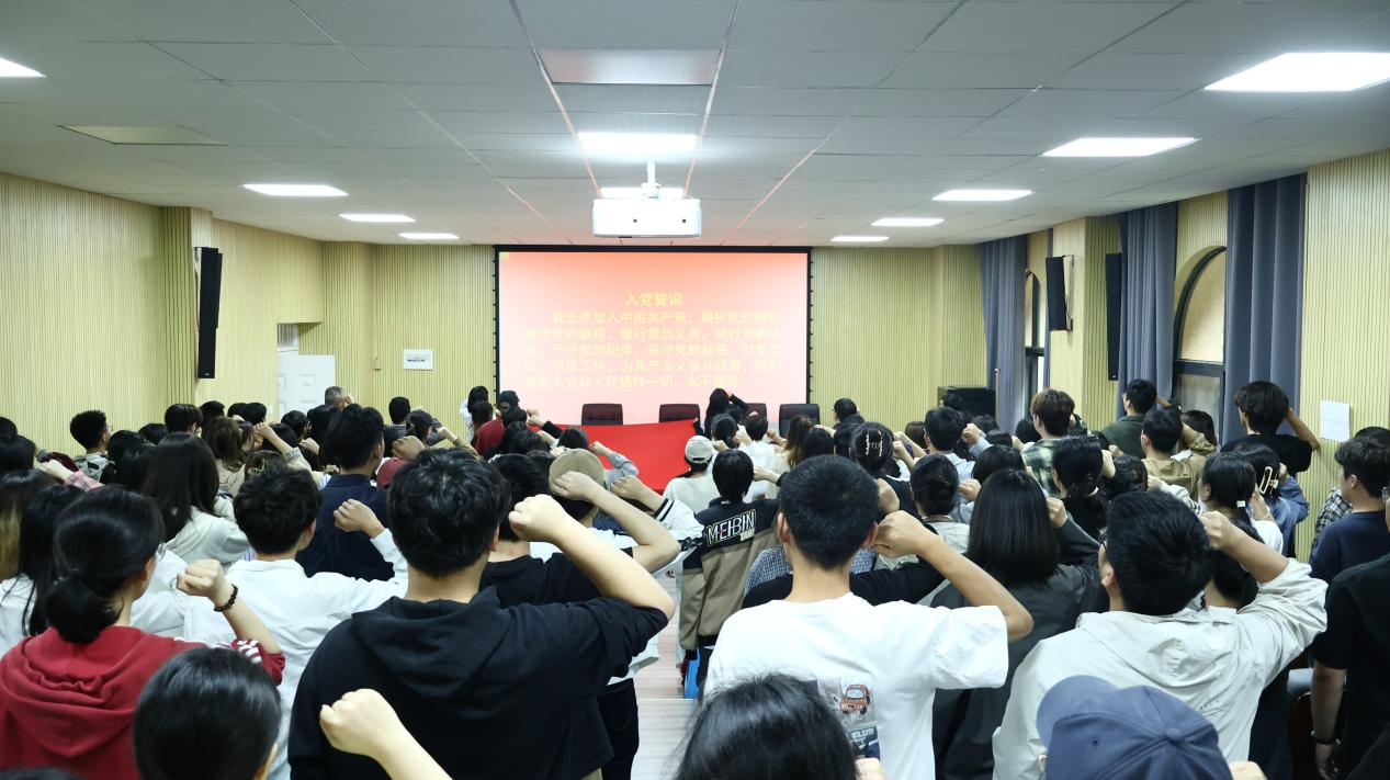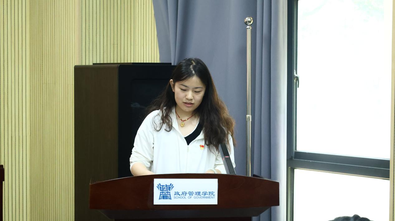 2022级政治学与行政学专业张晓婧同志作为新发展党员代表发言。她深情讲述了对党的认识历程和加入党组织的激动心情,表达了坚定理想信念、努力学习实践、争做合格党员的决心,展现了新党员昂扬向上的精神风貌。