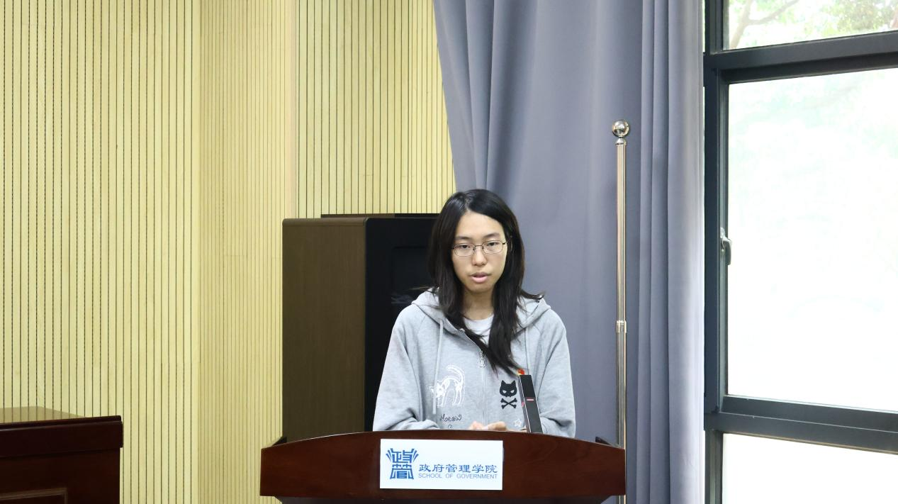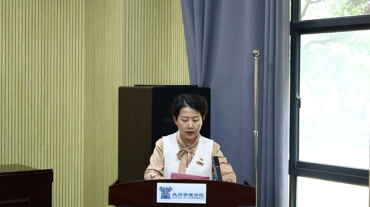 2024级行政管理专业吴曈同志作为表彰代表发言。她结合自身学习和工作经历,分享了党务工作心得,表达了对党组织培养的感激之情,并承诺将珍惜荣誉、再接再厉,在服务同学和支部建设中持续贡献力量。