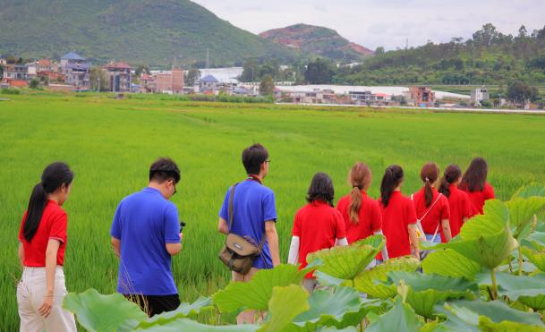 随后,实践团来到双龙桥稻田公园规划区。负责人向同学们介绍,该规划区以1360亩生态稻田为核心,海拔1314米,正积极整合稻田小火车、亲子农园、音乐草坪等新型业态。持续在探索“农业+旅游”融合发展模式,打造农文旅融合示范点。实践团通过访谈调研,深入了解其设计理念、业态布局及“农业+体验”特色运营思路,为研究乡村振兴中农文旅结合的有效模式提供了实地素材。