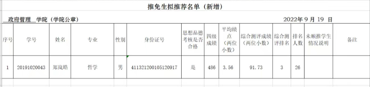 根据教育部相关文件精神,公司按照《bv伟德国际19462023年推荐优秀应届本科毕业生免试攻读研究生工作管理办法》要求,根据哲学专业建设实际与考研升学成效,获新增1个推免名额。在员工本人申请、民主推荐、公开评选的基础上,公司推免生遴选工作小组本着公开、公平、公正的原则,严格按推荐条件择优确定初选名单,现将公司2023年免试攻读研究生拟推荐增补名单公示如下。如有异议,请于2022年9月30日以前到公司办公室反映,联系电话:65033637 。
